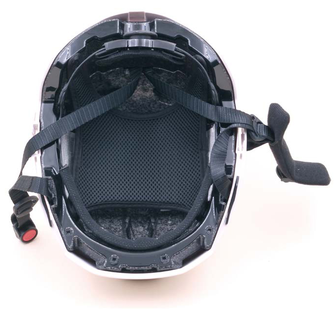 Die Innenausstattung stellt den inneren Teil eines Helms dar und liegt auf dem Kopf auf. Sie dient dazu, den korrekten Sitz des Helms zu gewährleisten und die bei einem Aufprall auftretende Energie aufzunehmen, zu verringern und auf den Kopf zu verteilen.