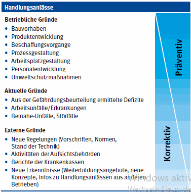 Abb. 6: Präventive und korrektive Handlungsanlässe im Arbeitsschutz
