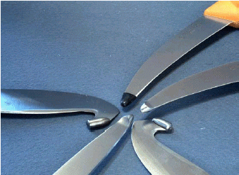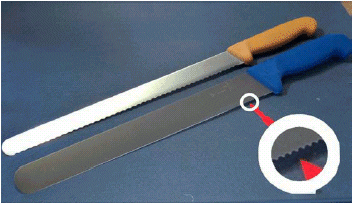 | Der Verzicht auf Spitze oder Schneide ist dann möglich, wenn nur geschnitten werden soll und eine Spitze entbehrlich ist, z.B. Brot, Brötchen oder Wurst aufschneiden, enthäuten eines Tieres, oder wenn nur etwas verteilt werden soll, z.B. Schlagsahne, Kuvertüre, Marmelade, Streichwurst, wobei selbst eine Schneide entbehrlich wird. |