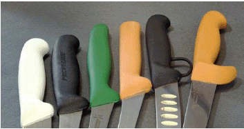| So ist z.B. der Einsatz von Sicherheitsmessern mit verdeckter oder sich selbst zurückziehender Klinge, z.B. Folienmesser, Kartonmesser, als technische Maßnahme anzusehen. Hierher gehören auch spezielle Messergriffe, die ein Abrutschen auf die Klinge verhindern oder besondere Arbeitshaltungen (Entvliesmesser) ermöglichen. Auch der Einsatz von Spezialmessern erleichtert nicht nur die Arbeit, sondern ermöglicht es, das Risiko für den Mitarbeiter gezielt abzusenken, z.B. Wiegemesser, Pizza(rund)messer. |